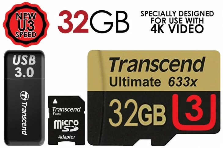 Transcend's SDXC/SDHC UHS-I Speed Class 3 (U3) 633x microSD cards provide the performance and capacity necessary to harness the full power of your Phantom 4 Drone, as well as accessories such as smartphones, tablets, digital cameras and camcorders. Capable of reaching incredible read and write speeds of up to 95MB/s and 85MB/s, these cards can easily capture ultra-high quality 4K and 3D recording and significantly reduce the time it takes to transfer videos to your computer. Additionally, the top-tier MLC NAND flash chips inside provide consistent long-life durability and endurance.Designed for your sports camcorder, tablet, or smartphone, High-Performance microSDHC/microSDXC UHS-I cards (633x) make it easy to quickly capture play back, and transfer 1080p full-HD, 3D, and 4K video, as well as the highest-quality movies, photos, and songs. These high-capacity, Class 10 cards leverage UHS-I technology to deliver high-speed performance—up to 633x (95MB/s).* The cards also come with a USB 3.0 reader for high-speed file transfer. These premium memory solutions give you the speed and space you need to capture more adventure on the go.